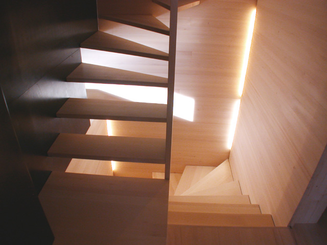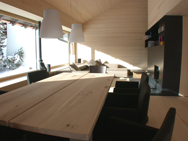 Helle Hölzer sind zeitlos schön. Das Tannenholz ist von matter weißlicher Farbe. Der warme Ton des Holzes schafft behagliche Lebensräume mit Atmosphäre. Der Innenausbau dieses Hauses in Vorarlberg zeugt von einem ästhetischen, zeitlosen Design.