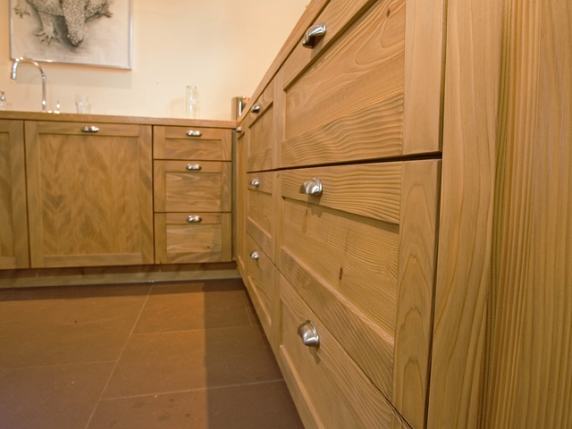 Die Harzfreiheit verleiht der Weißtanne nicht nur eine edles Erscheinungsbild, sondern erleichtert die Oberflächenbehandlung und Pflege. Dies macht das Tannenholz auch für den Küchenbau und Essbereich interessant.