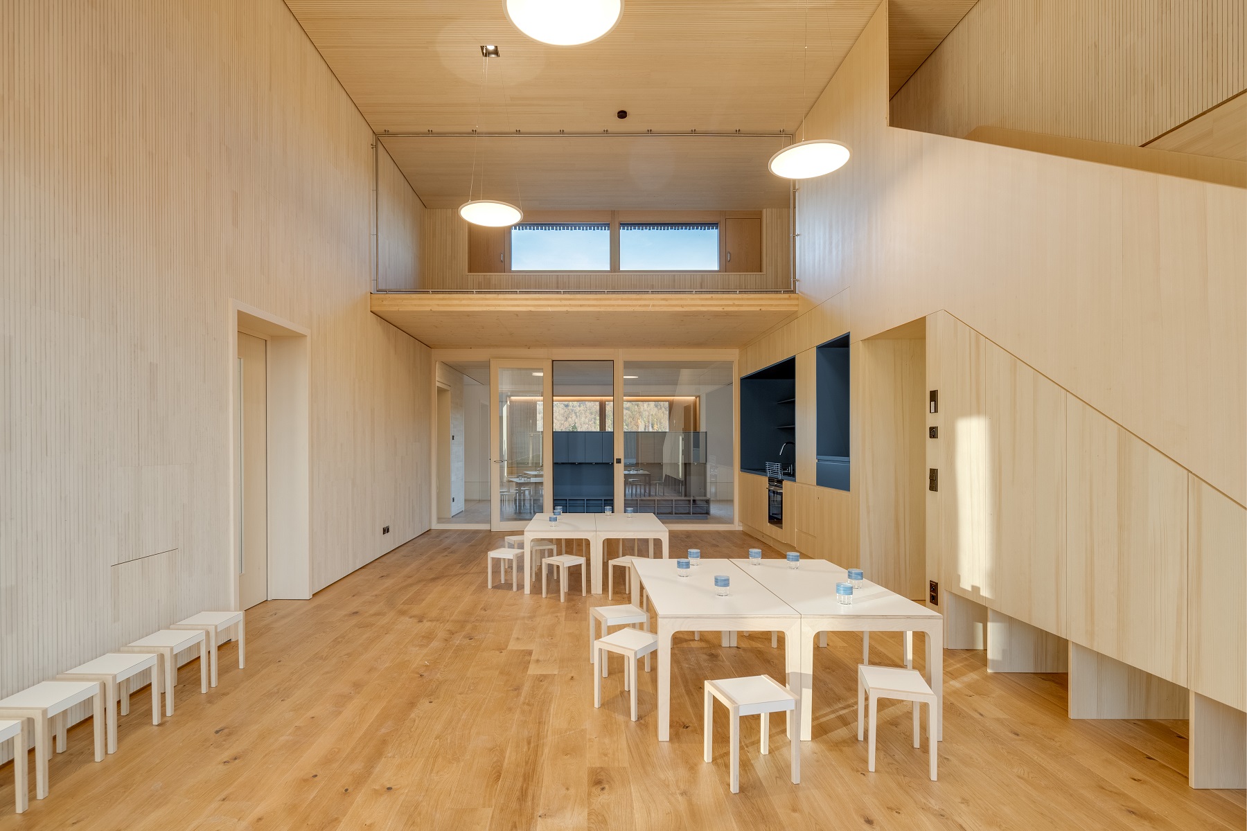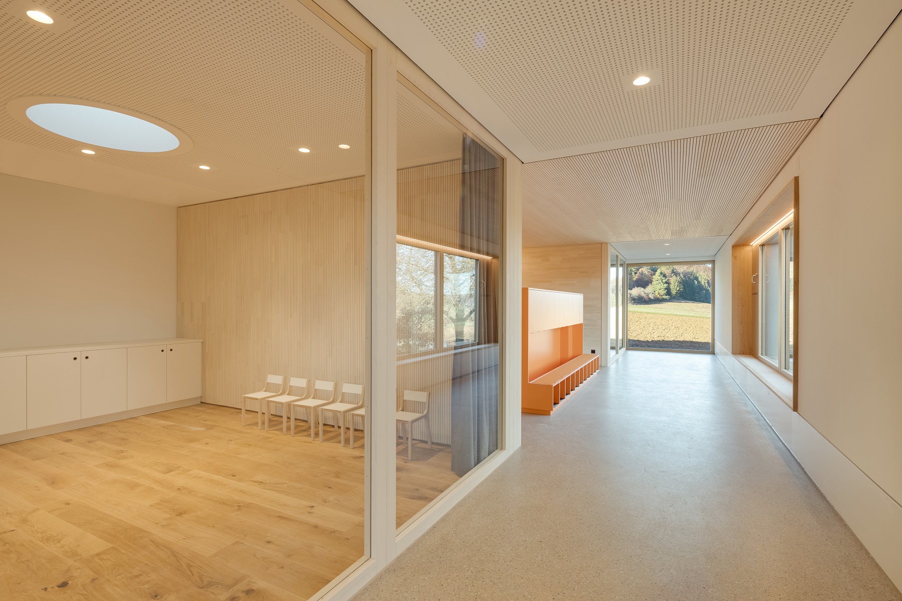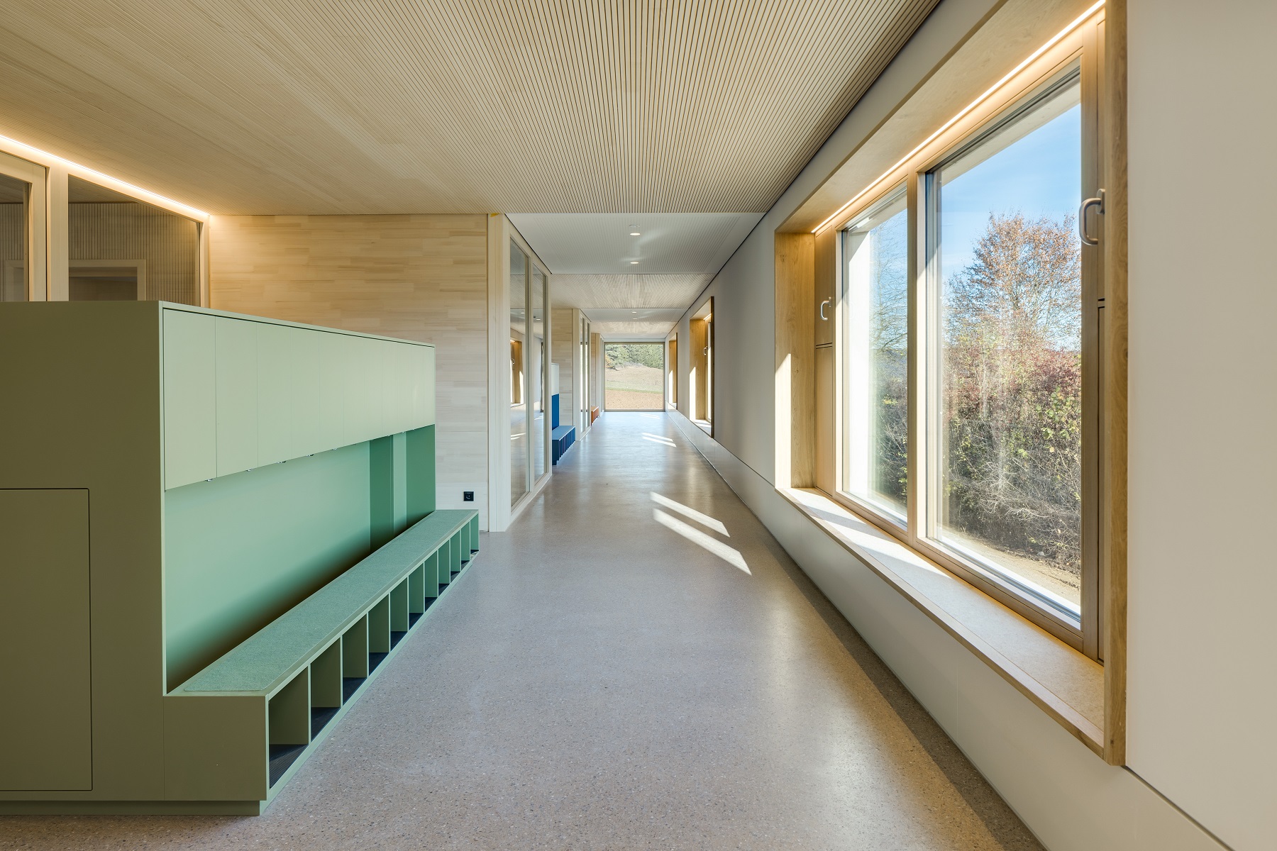 Im bayrischen Walting bei Eichstätt entstand von 2018 - 2020 der Neubau eines Kneippkindergartens. Die Innenverkleidung und Möbel wurden vorrangig in Weißtanne umgesetzt.