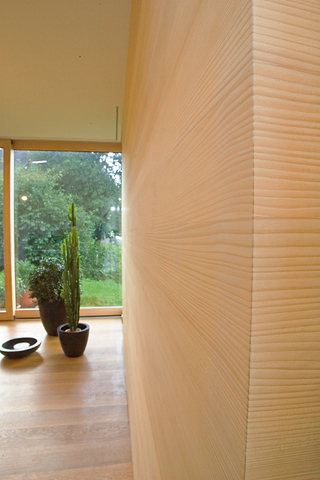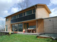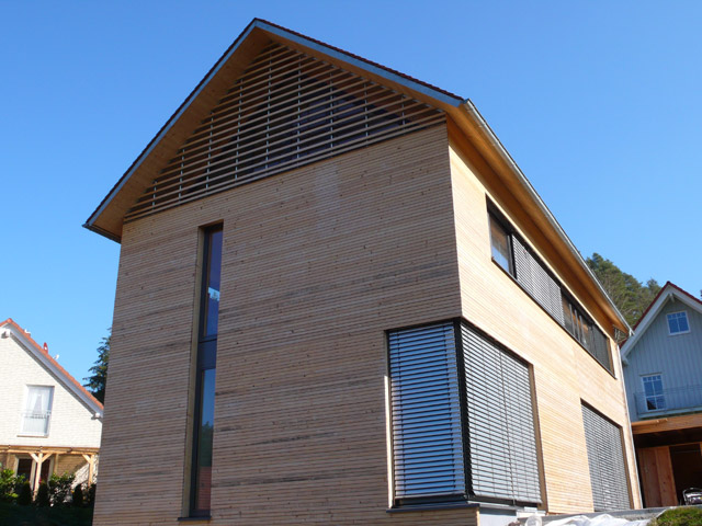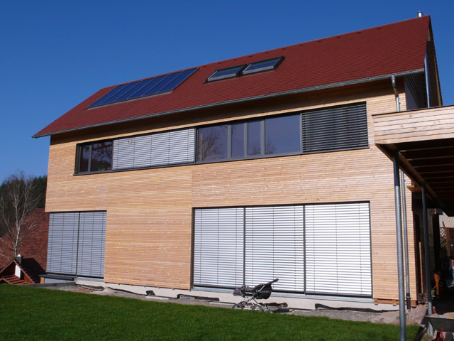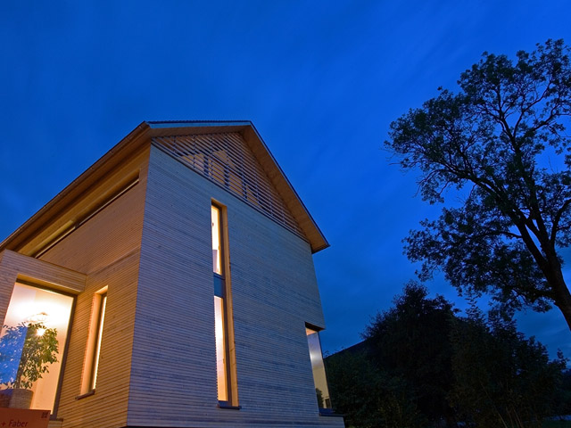 Die Bauherren legten großen Wert auf die Verwendung der heimischen Baumart Weißtanne. In der Konstruktion hat sie die gleichen technischen Eigenschaften wie Fichte. In der Außenschalung hat sie nach alten Bauernerfahrungen eine gute Haltbarkeit.