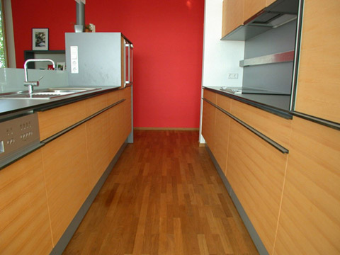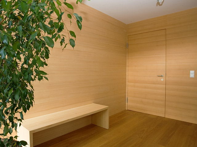 Im Innenausbau hebt sie sich in der Struktur und Farbe hingegen deutlich von der Fichte ab. Familie Ölz setzte sowohl Fenster, Innentüren, Täfer, Kästen und auch die Küche wurden bei diesem Projekt in Weißtanne ausgeführt.