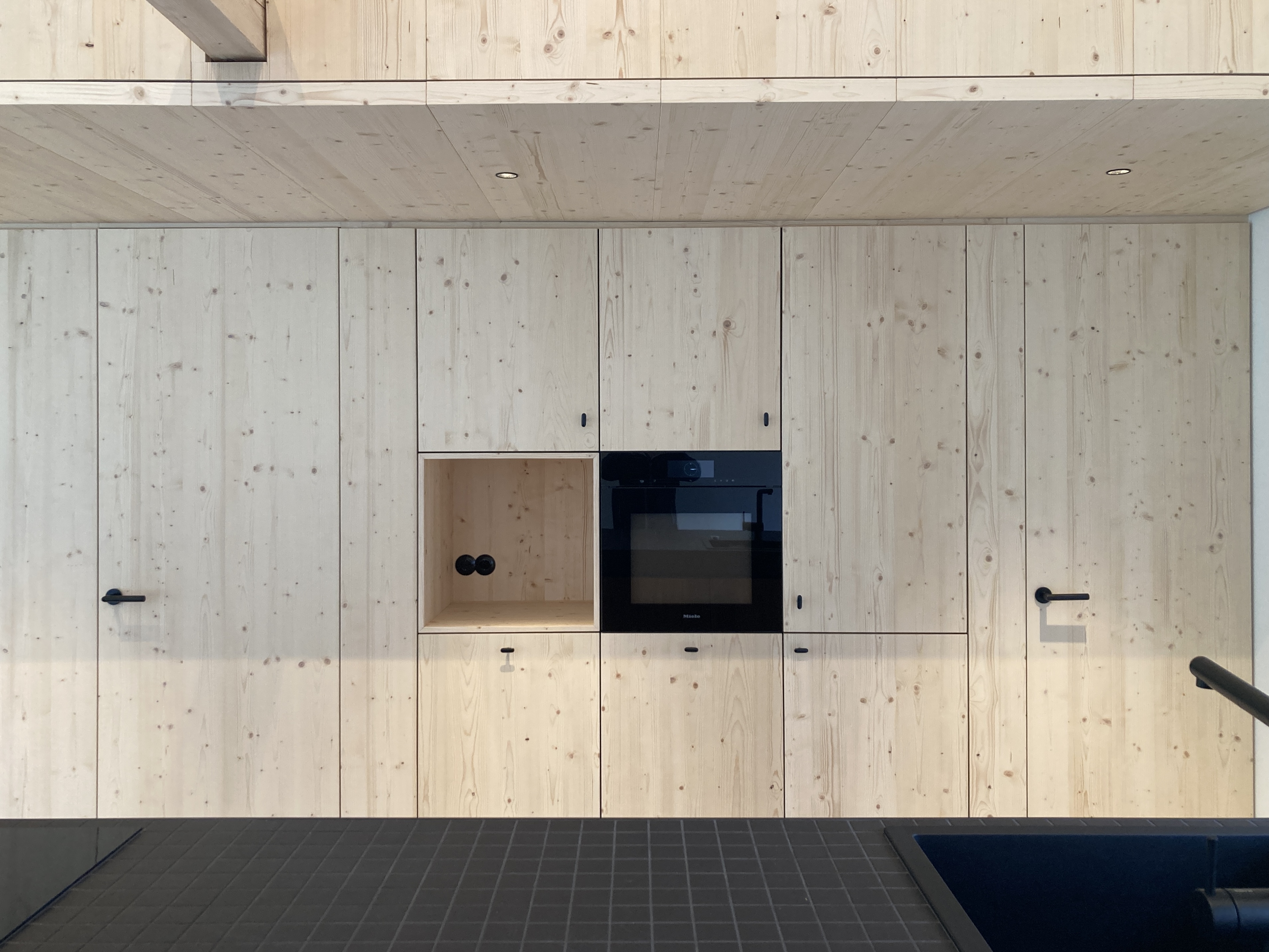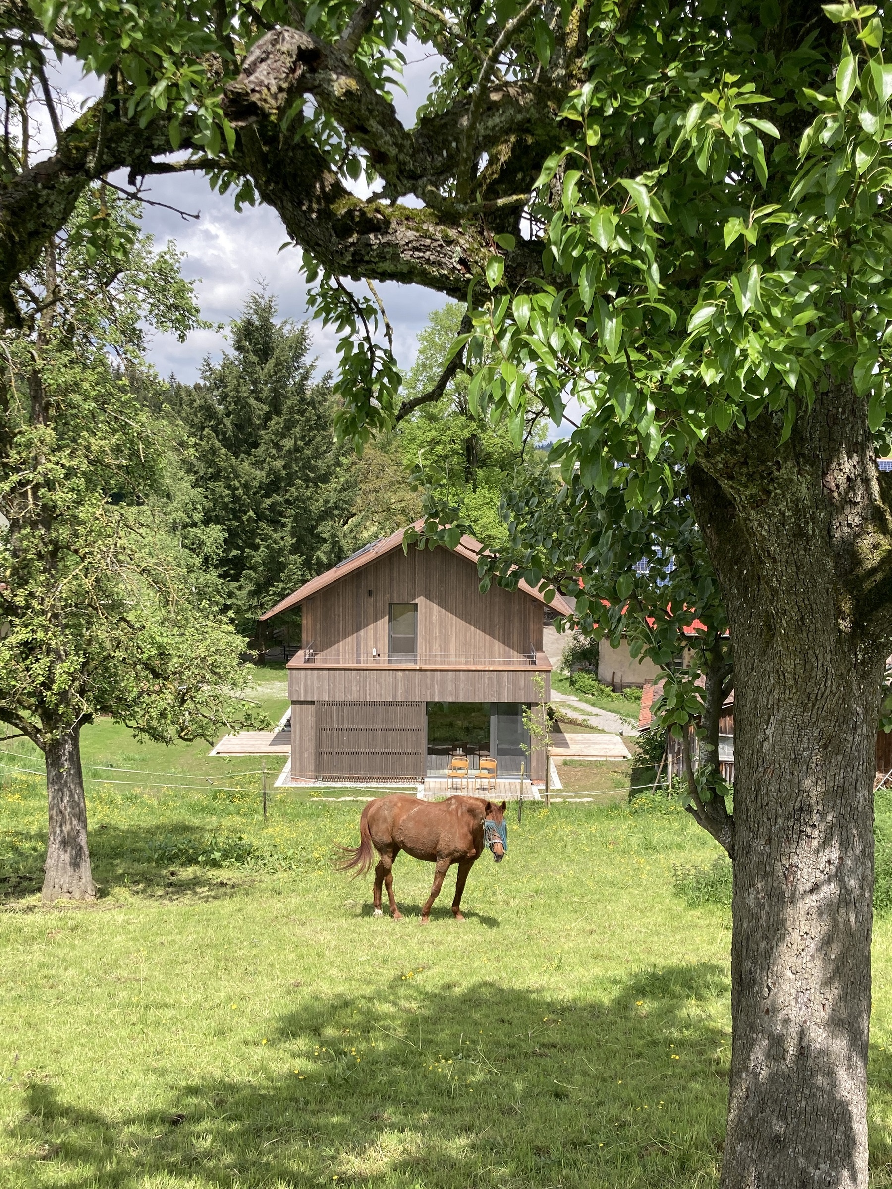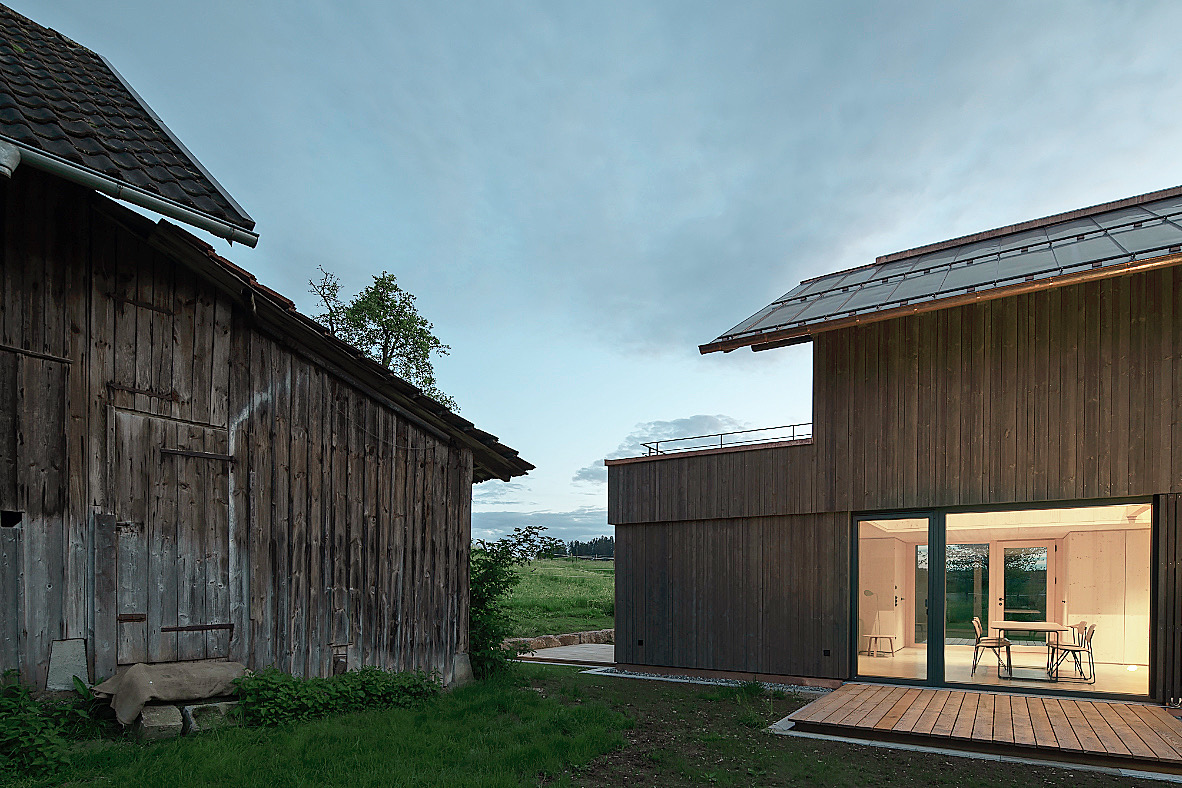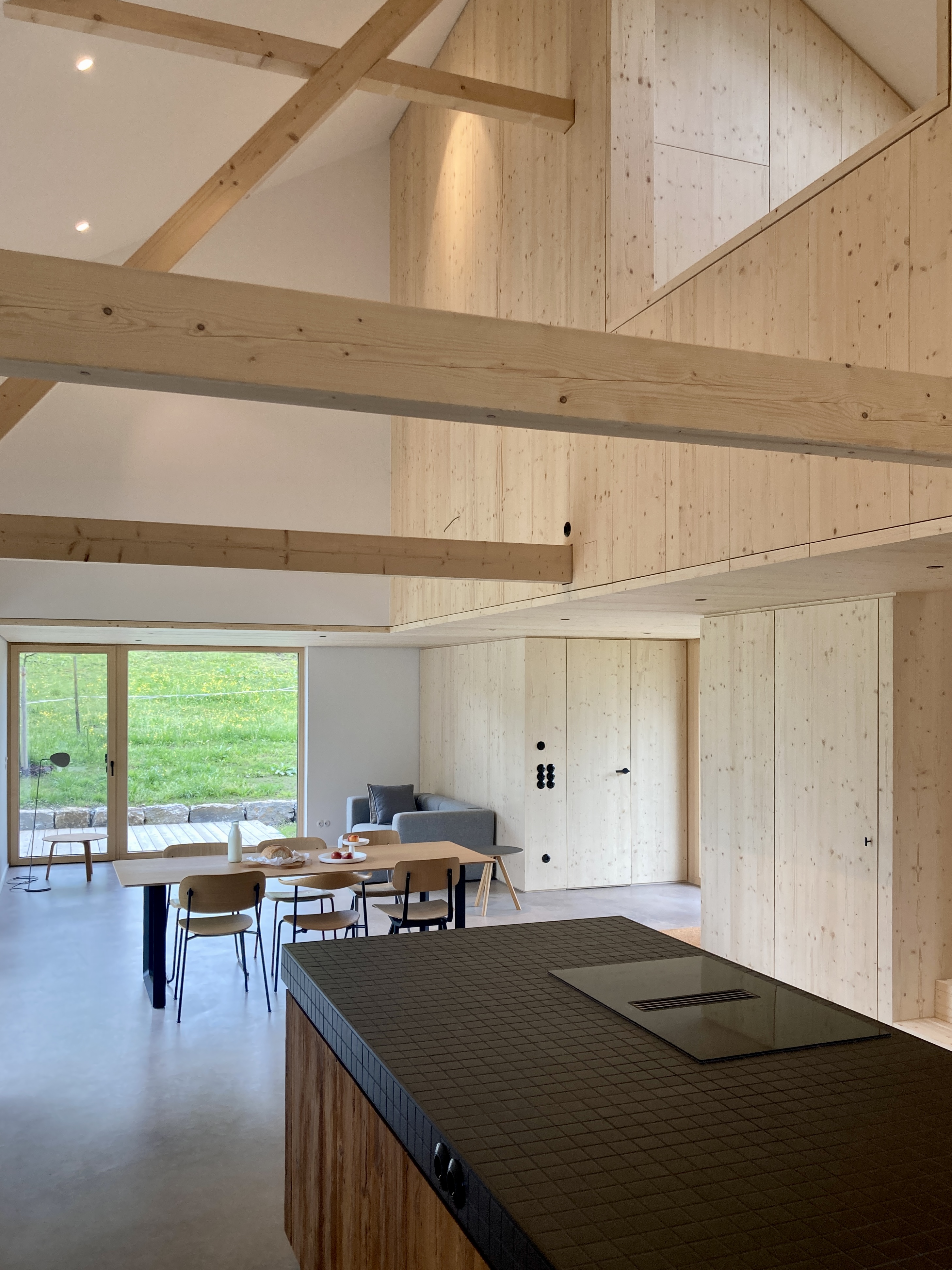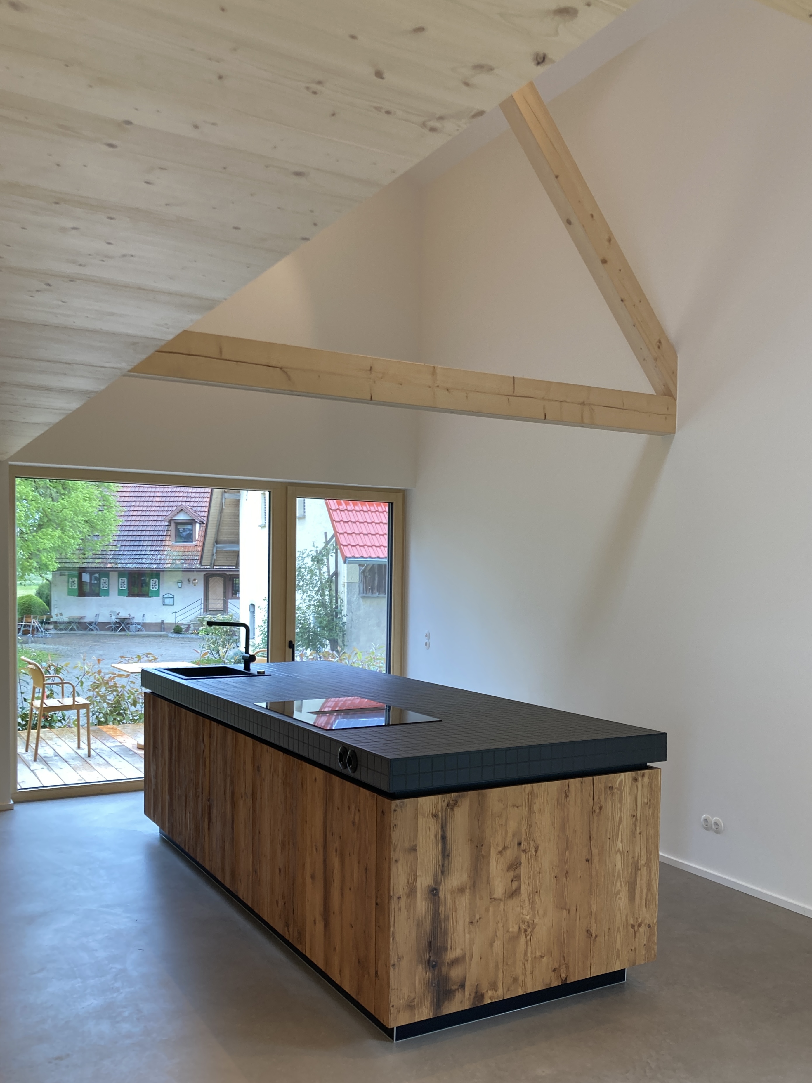 Denn Wohnraum ist knapp und kostbar, zusätzliche Versiegelungen sind zu vermeiden... Die Architektur ist zeitlos, geprägt von der Baukultur des Bregenzerwaldes und im Detail sehr präzise. Die umgebaute Scheune steht innerhalb eines Hofensembles mit weiteren Scheuen und einem Gasthaus mit Biergarten. Dieses Projekt ist ein sehr gelungenes Beispiel für die konstruktive Zusammenarbeit von Baubehörde, Bauherr und einem Architekturbüro mit sehr hohem Anspruch.